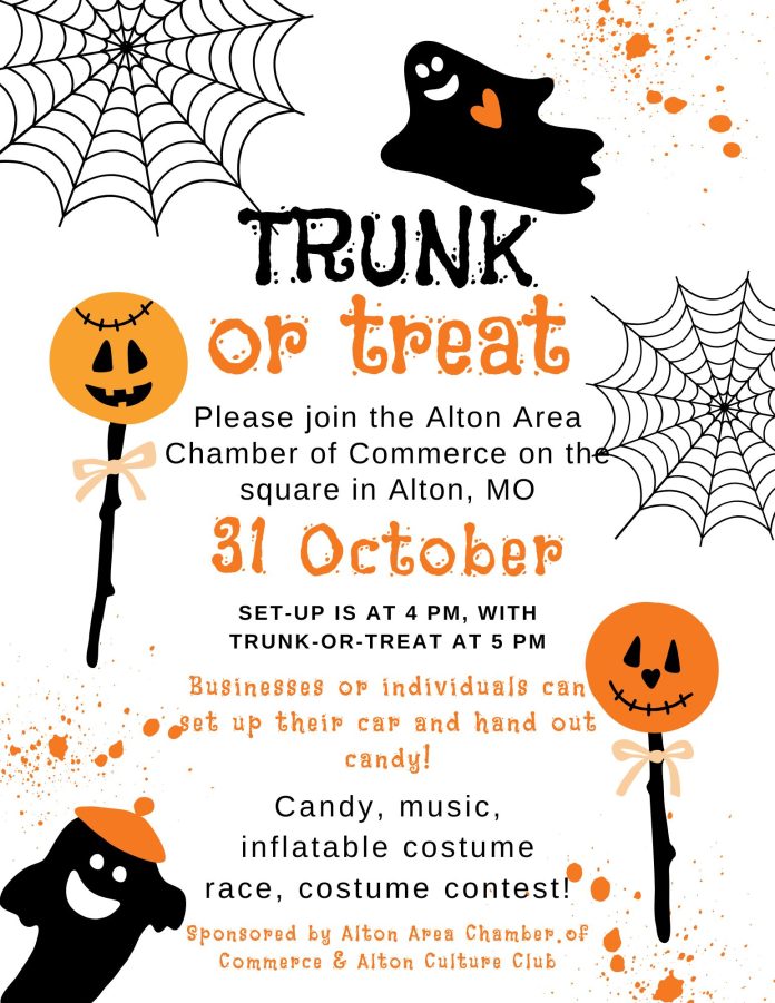 Local News Trunk or Treat on the Alton Square Halloween Night By James Hurtt - October 26, 2025 FacebookTwitterPinterestWhatsApp The Alton Chamber of Commerce is inviting the public to the square for Trunk or Treat on Halloween October 31st. Set up will be at 4:00 and the event begins at 5:00. Advertisement ShareTweet Advertisement