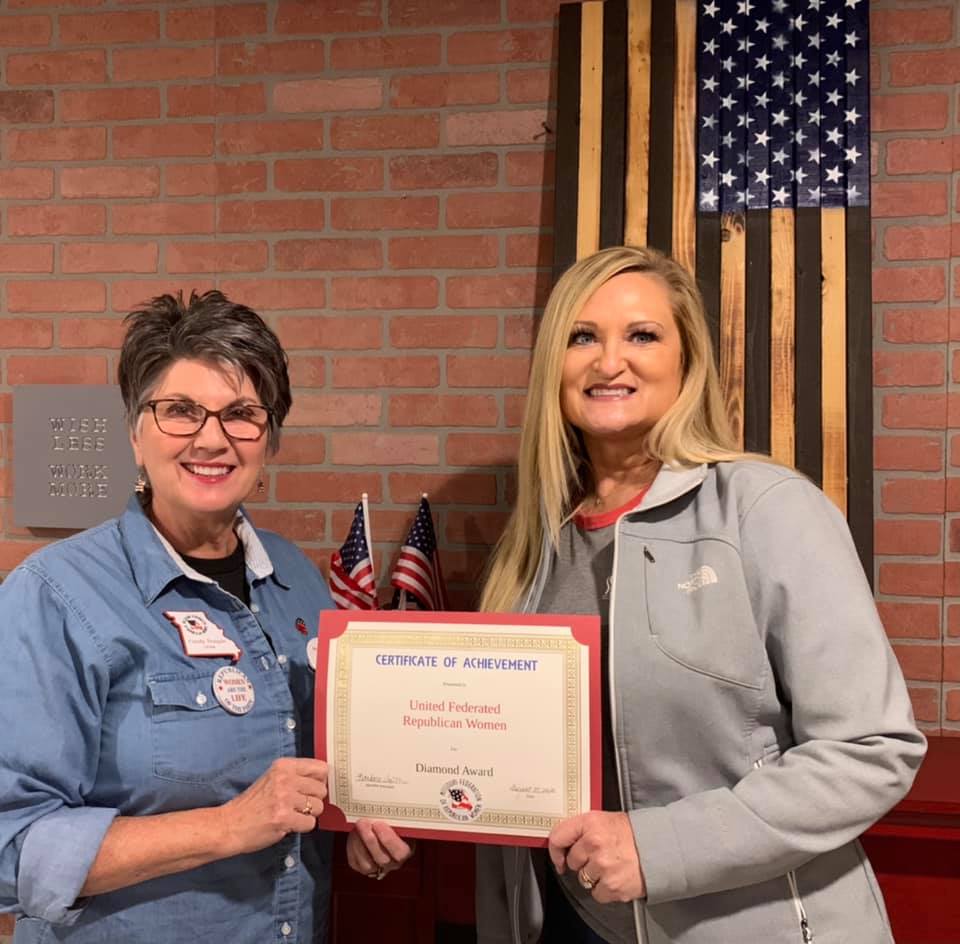The West Plains chapter of the United Federated Republican Women (UFRW) received the highest award possible, The Diamond Award for 2020 by the Missouri Federation of Republican Women (MoFRW), founded in 1930.