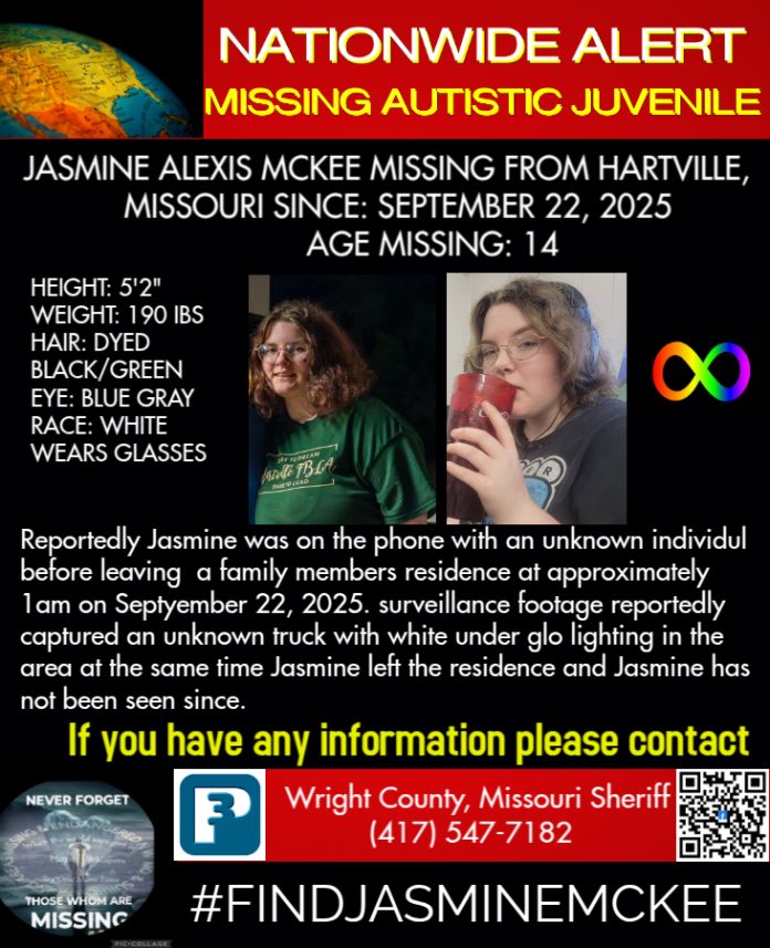 Jasmine McKee went missing on September 22nd, with the Wright County Sheriff’s Office initiating a search for the teen soon after. Jasmine has yet to have been found, and was reported to have been picked up by an unknown driver of a dark vehicle before going missing.