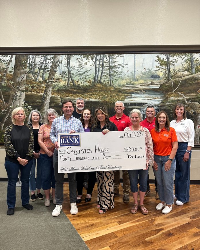West Plains, MO. – Last week, West Plains Bank and Trust donated $40,000 to the Christos House in West Plains to support their Tiny Home Project, which is intended to create 14 homes for those who suffered abuse.