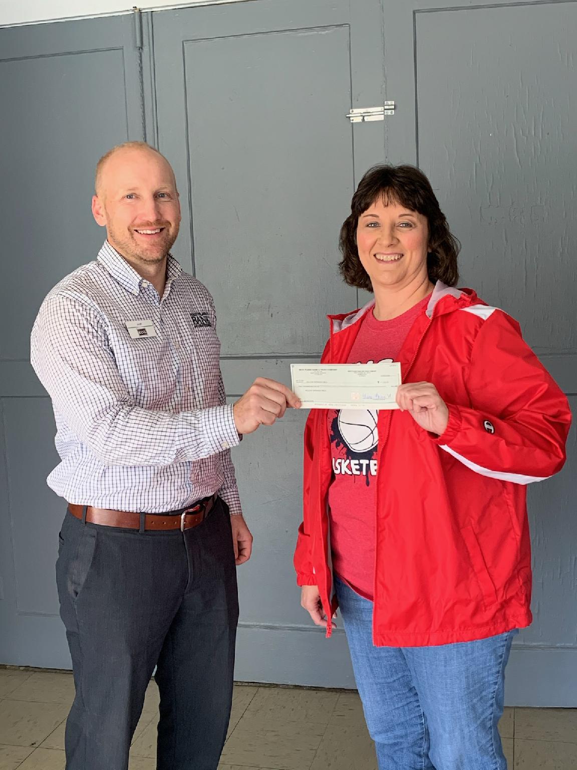 Pictured, from left, are: West Plains Bank and Trust Company Willow Springs Branch Loan Officer Josh Henry and Willow Springs YMCA Director Terri Elmore.