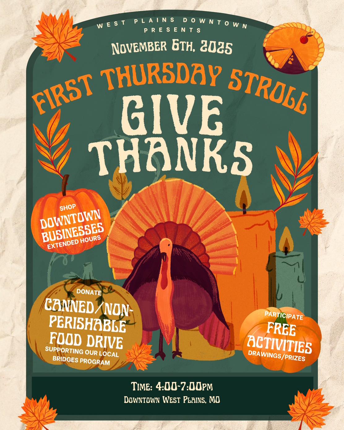 West Plains, MO. – We’re now officially in November, and the next West Plains Downtown Stroll is just around the corner. This event is said to include a cornucopia of different activities.