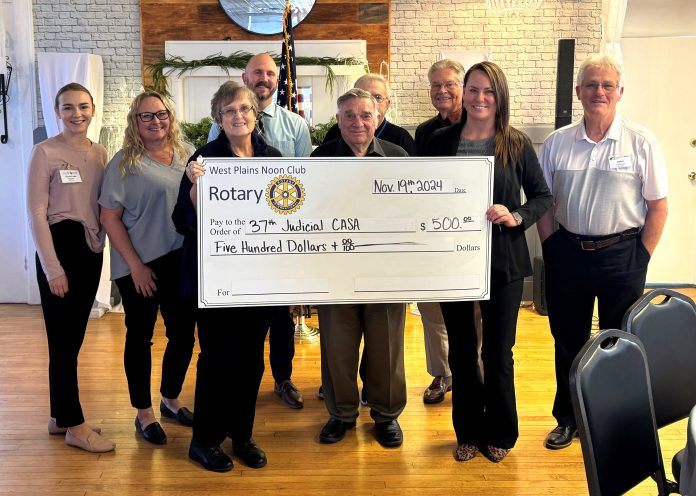 This month, West Plains Noon Rotary Club proudly donated to the CASA program, helping cover mileage costs for advocates visiting foster children. Next month, they say they’ll spread holiday cheer by brightening the season for older adults in our community.