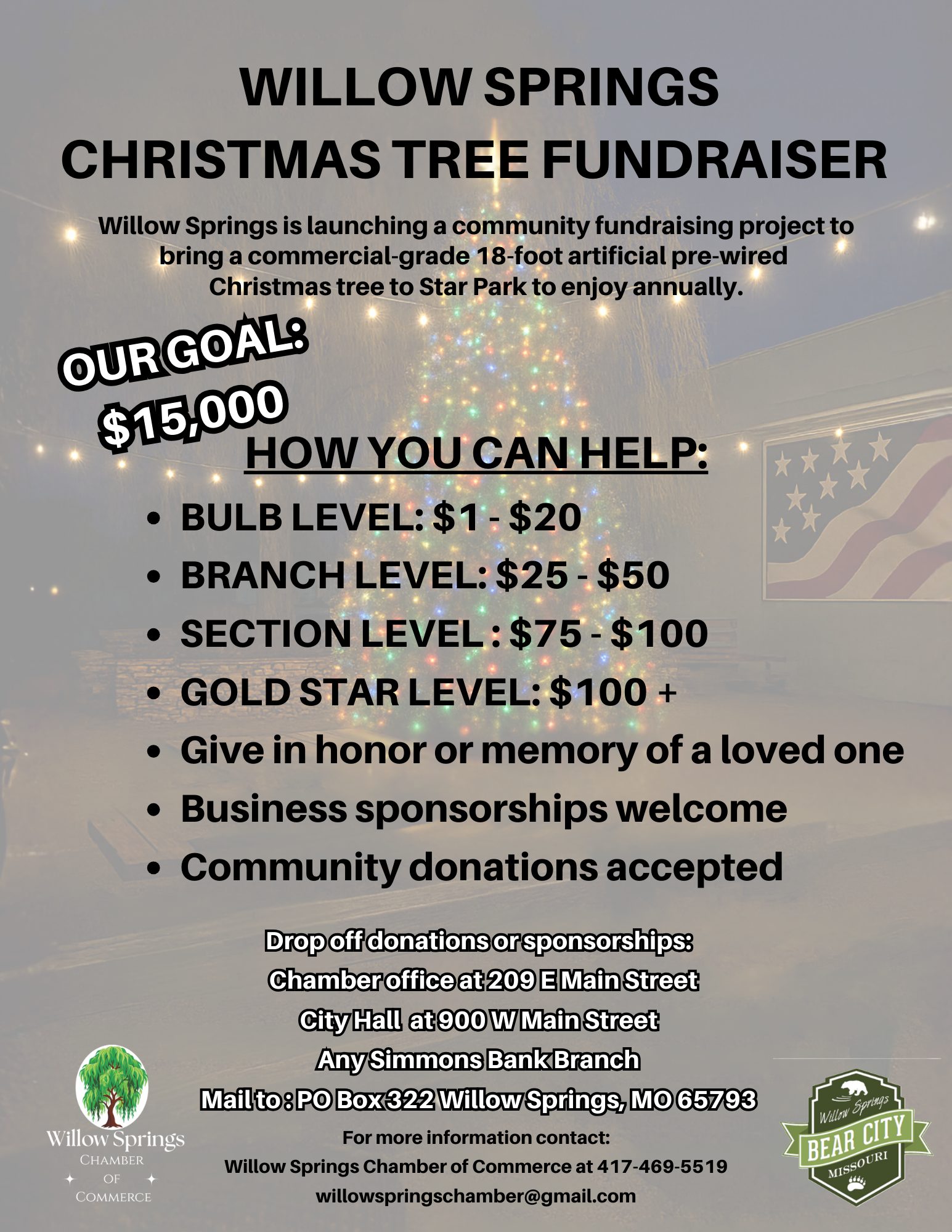 Community Christmas Tree a reality. For more information, contact the Willow Springs Chamber of Commerce.