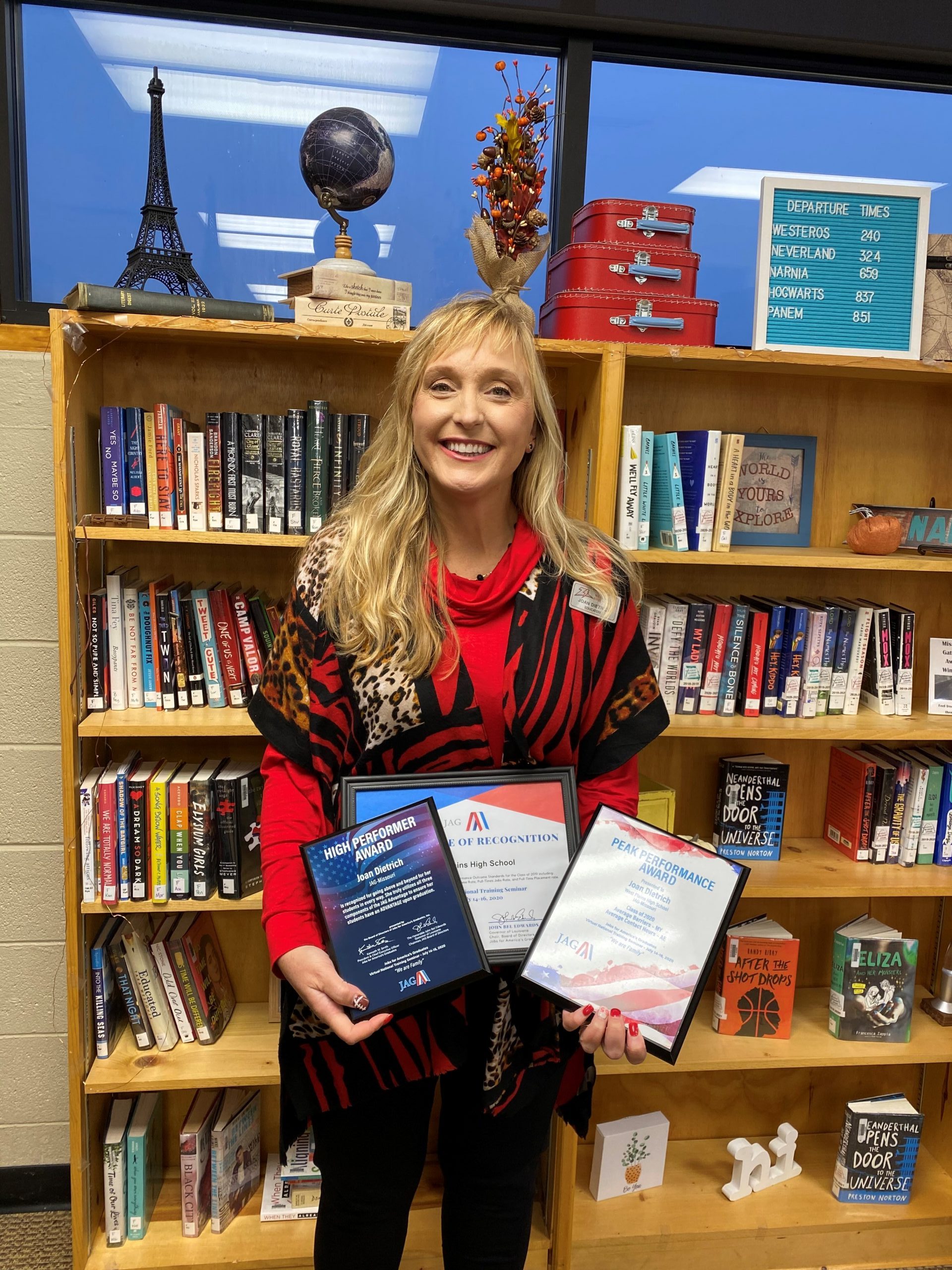 West Plains High School educator Joan Dietrich and the Jobs for America’s Graduates (JAG) program received three national awards over the summer – the Peak Performance award, the Contact Hours award, and the 5 of 5 Performance award.