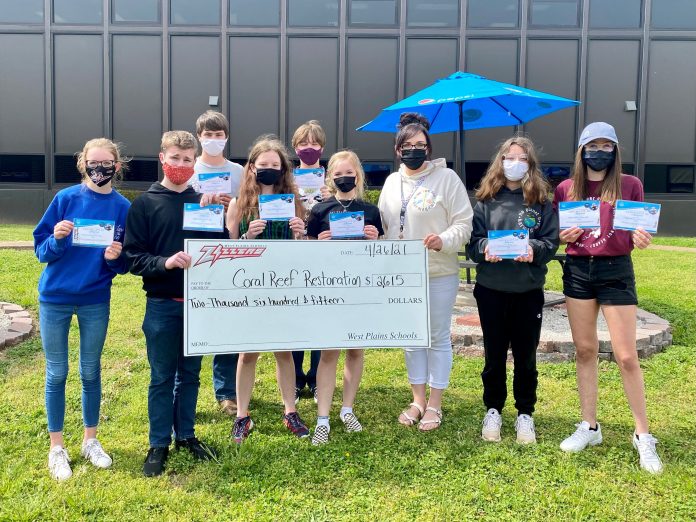 As part of the ecology unit in the high school Biology classes, the students study various environmental issues, including human impact on the coral reefs. The students wanted to make a difference, and they did. The students donated $2,615 to the Coral Reef Restoration Foundation.