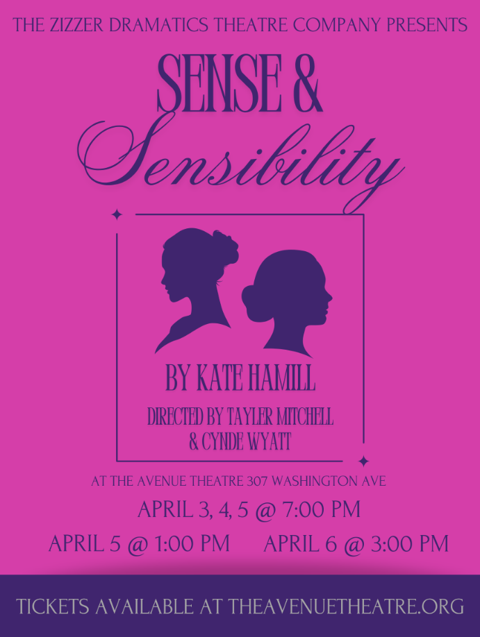 The Zizzer Dramatics Theatre Company is bringing a beloved classic to the stage with their upcoming production of Sense & Sensibility, adapted by Kate Hamill. Their take on Jane Austen’s timeless novel will be performed at The Avenue Theatre, 307 Washington Ave on the following dates: