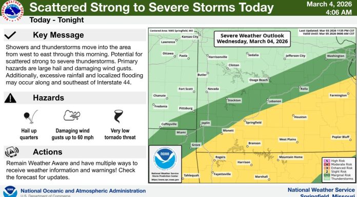 The National Weather Service in Springfield is warning of severe weather to make its return to the Ozarks today, with a Severe Thunderstorm Warning...