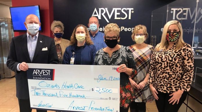 WEST PLAINS, MO – A $2,500 donation has been made by Arvest Bank to Ozarks Healthcare’s Foundation to support “Nurturing Hope: A Community Cancer...