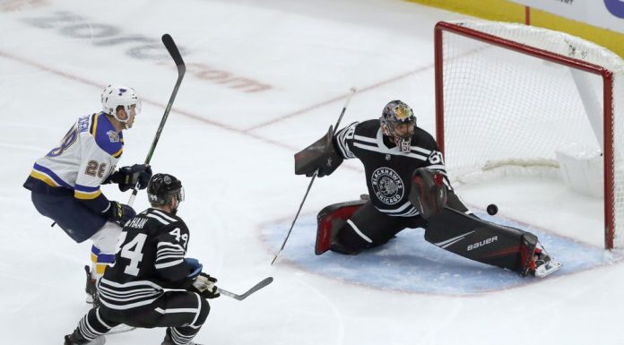 CHICAGO (AP) — Jake Allen made 38 saves, Brayden Schenn scored his team-leading 14th goal and the St. Louis Blues beat...