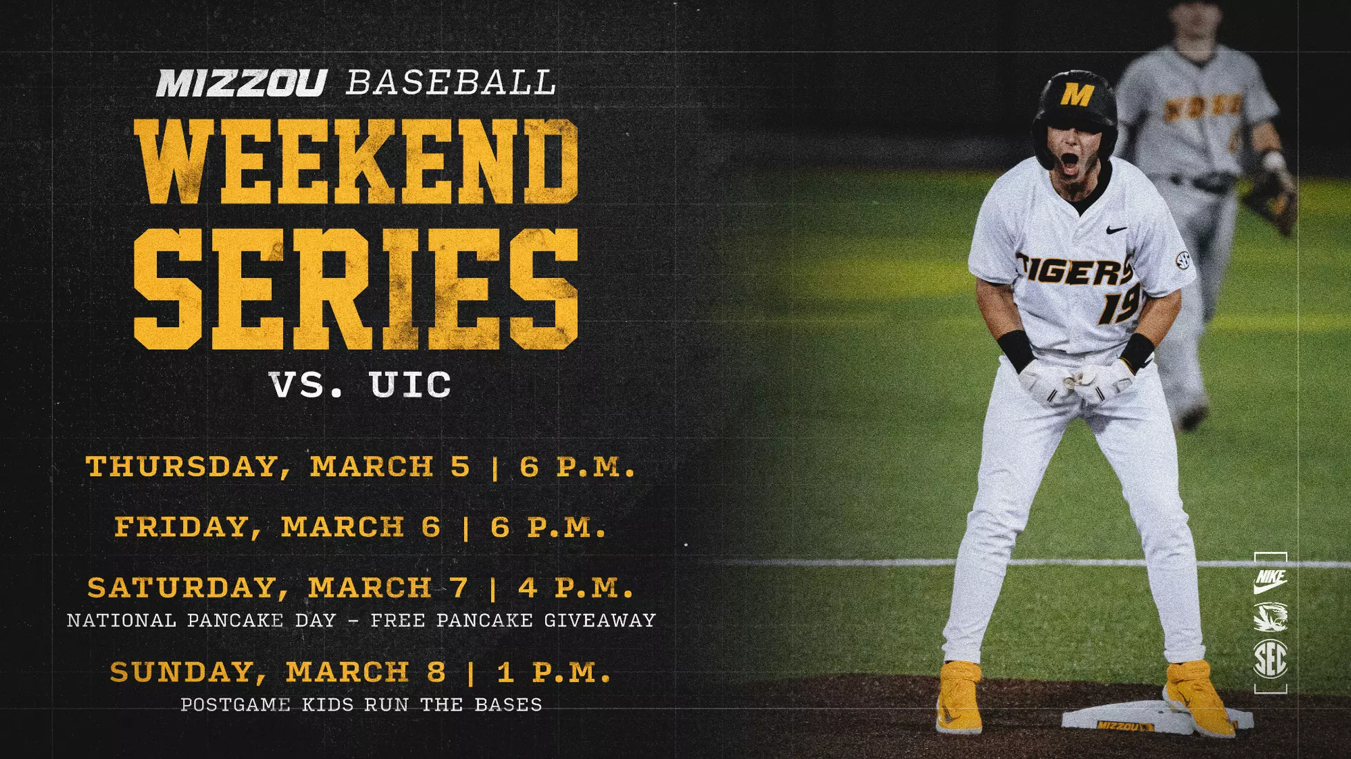 COLUMBIA, Mo. – Mizzou Baseball will welcome the UIC Flames to Taylor Stadium for a four-game weekend series, beginning Thursday evening at 6 p.m. CT. Game two of the series is scheduled for Friday at 6 p.m., followed by game three Saturday at 4 p.m. with the finale slated for Sunday at 1 p.m.