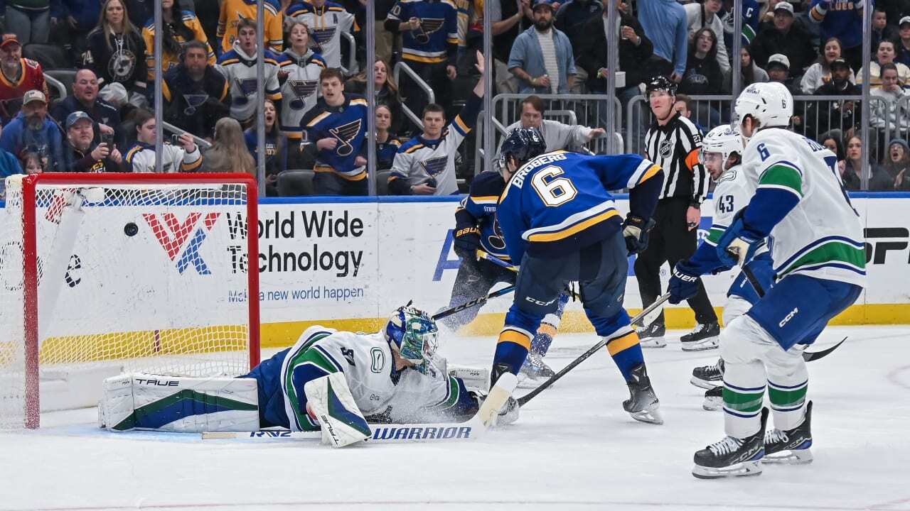 VAN@STL: Broberg finishes Schenn’s dish for overtime winner