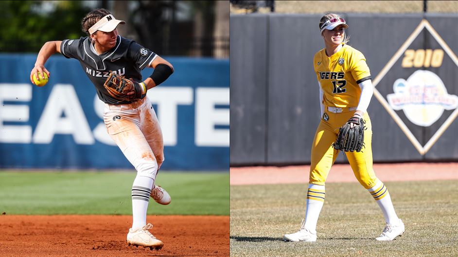 COLUMBIA, Mo. – In the inaugural year of the Rawlings Gold Glove Award, presented by the National Fastpitch Coaches Association, University of Missouri softball’s Jenna Laird and Casidy Chaumont earned the award at shortstop and left field, respectively.