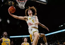 Garylee talks with Liberty Eagles head coach Justin Harrill