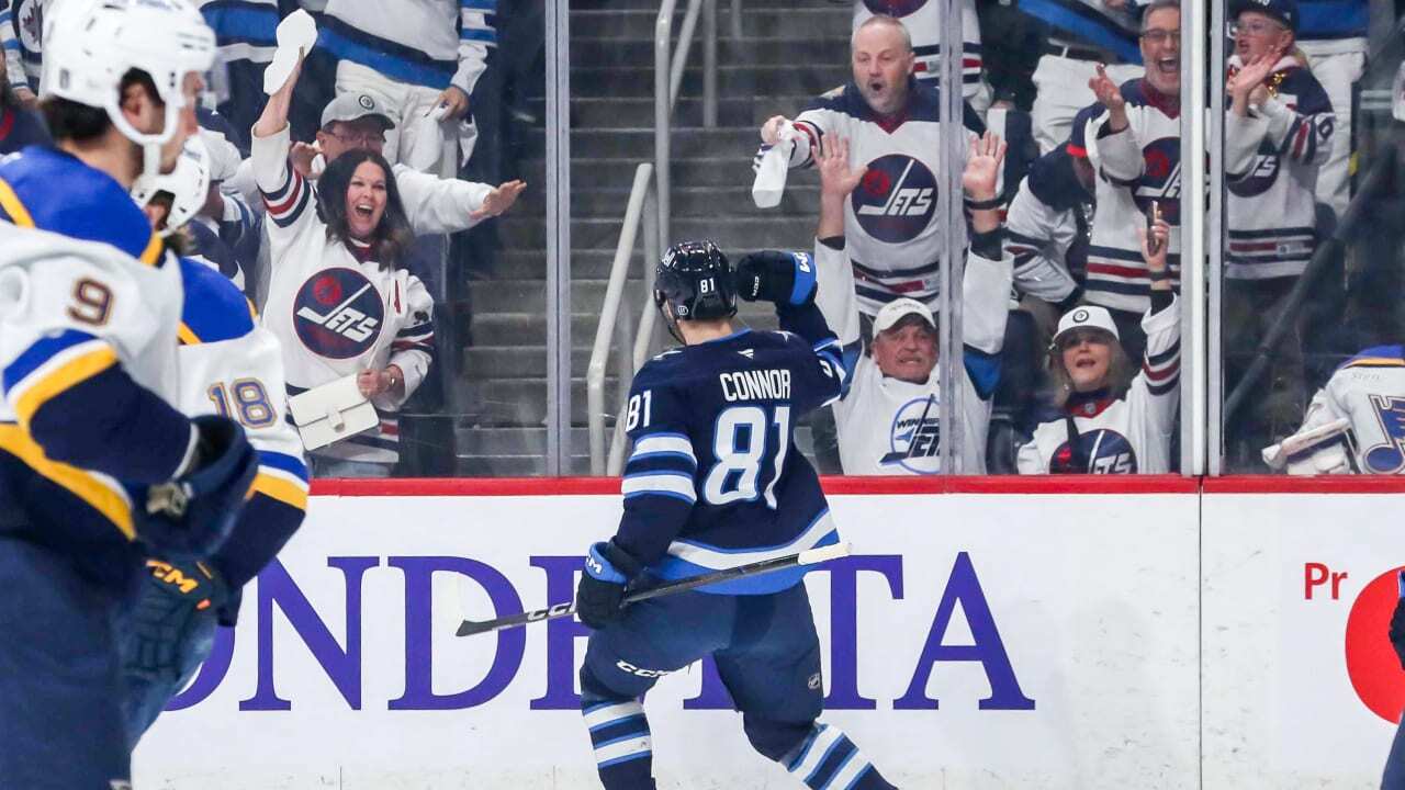 Kyle Connor had a goal and two assists, and the Winnipeg Jets won 5-3 against the St. Louis Blues in Game 5 of the Western Conference First Round at Canada Life Centre in Winnipeg, Manitoba, on Wednesday.