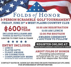 Sports Folds Of Honor golf tournament By Gary Lee - June 19, 2024 FacebookTwitterPinterestWhatsApp Ozark Radio Sports talked with Daivd Gohn about this golf tournament this Friday. Advertisement https://www.ozarkradionews.com/ozarkradionews/wp-content/uploads/2024/06/folds-of-honor.mp3 ShareTweet Advertisement