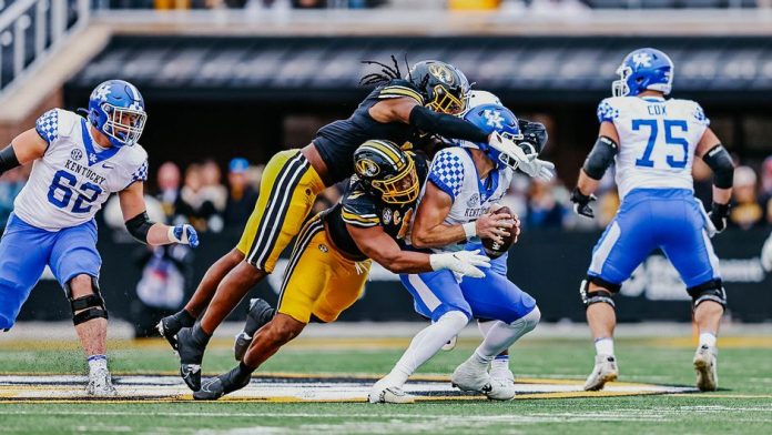 The game was a defensive slugfest. Kentucky managed just 242 yards total offense slightly more than Missouri’s 232. The Tigers sacked Levis six times – their highest total since the 2021 season opener against Central Michigan – and had 11 tackles for loss, while the Wildcats sacked Cook twice, had 9 tackles for loss, and recovered two fumbles.