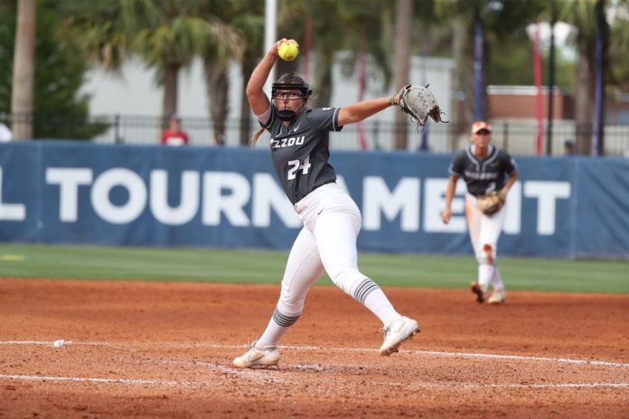 GAINESVILLE, Fla. – Laurin Krings tossed seven shutout innings to lead No. 24/22 University of Missouri softball (35-19) past No. 5/7 Alabama (41-11) by a score of 3-0 in the SEC quarterfinals. The Tigers’ three runs in the top of the sixth were all that they needed.