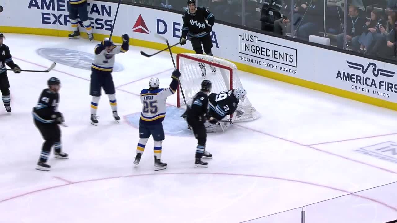 Kyrou breaks tie in 3rd, Blues end 4-game skid with win against Utah