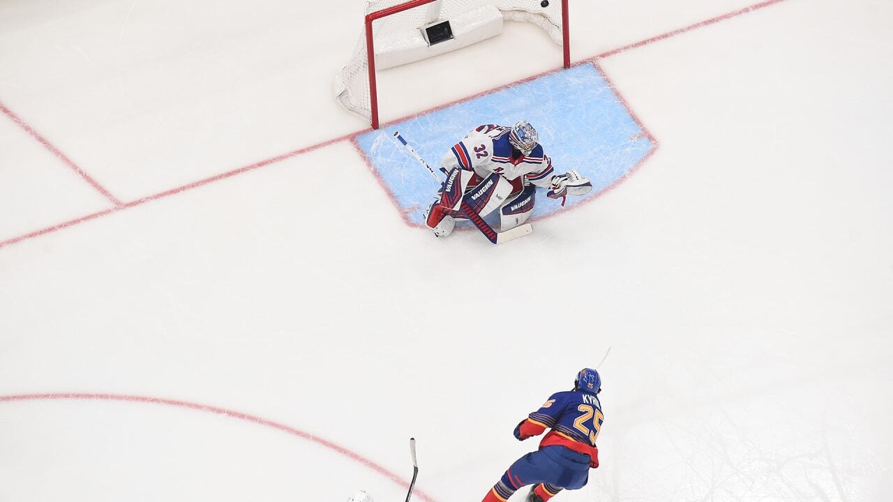 Kyrou made it 2-0 at 6:33 of the second period after stripping New York defenseman Ryan Lindgren of the puck in the neutral zone and scoring on a breakaway.