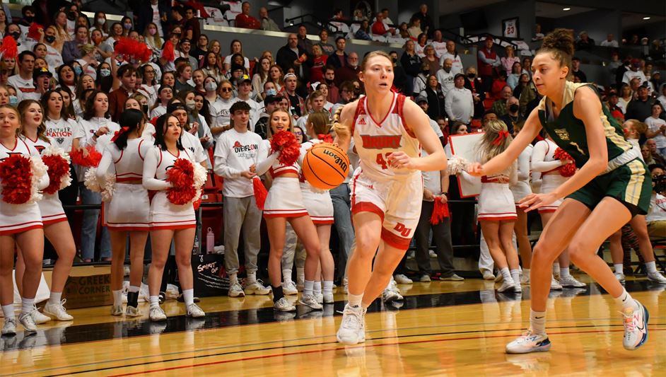 Henderson converted on a backdoor pass for a layup on the next possession for a 65-59 lead. “That was big,” said Drury coach Amy Eagan. “They came out in a zone and we just ran a man-to-man play.”