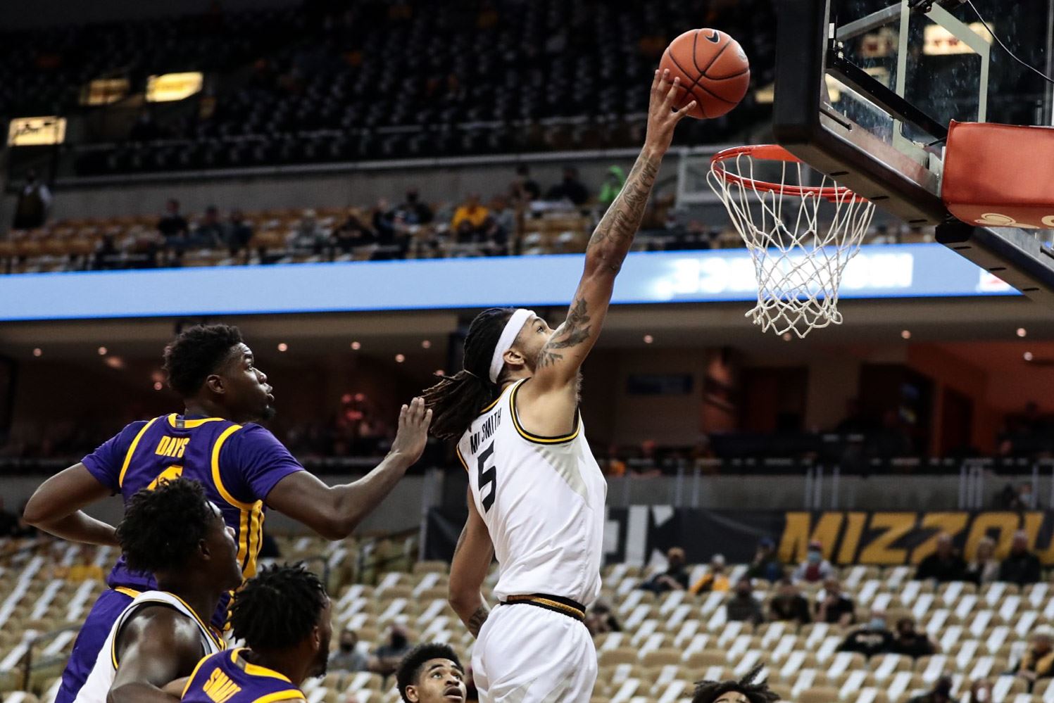 After five lead changes and a 22-11 run to end the first half, Mizzou entered halftime with the score knotted at 40-40 thanks to a Mitchell Smith three-pointer. Both teams battled through the second half, with neither team leading by more than six points. Mizzou tied the score at 80 after a great second effort offensive rebound and putback by Smith. LSU answered with a basket and got consecutive stops in the final minute to claim the win.