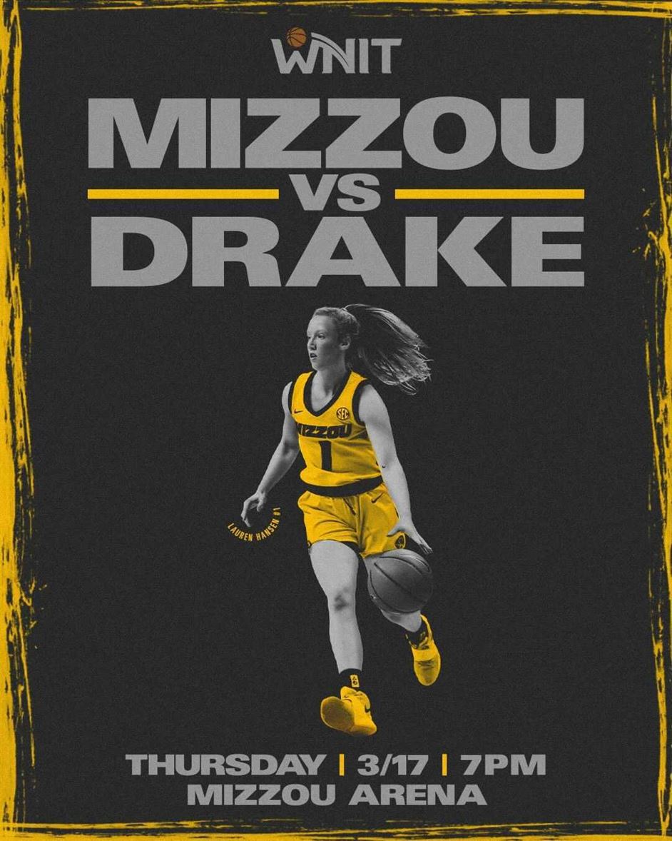 COLUMBIA, Mo. – University of Missouri Women’s basketball and Drake will face off in the opening round of the Postseason WNIT on Thursday at 7 p.m. CT. The game, the first meeting between the two teams in Columbia since Feb. 8, 1979, will air on SEC Network+ and the Tiger Radio Network.