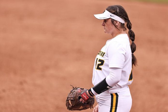 Mizzou swept its midweek Braggin’ Rights doubleheader over Illinois March 14 at the Mizzou Softball Stadium. Jordan Weber and Laurin Krings, each compiled complete-game wins as the Tigers topped Illinois, 3-2 and 7-0.
