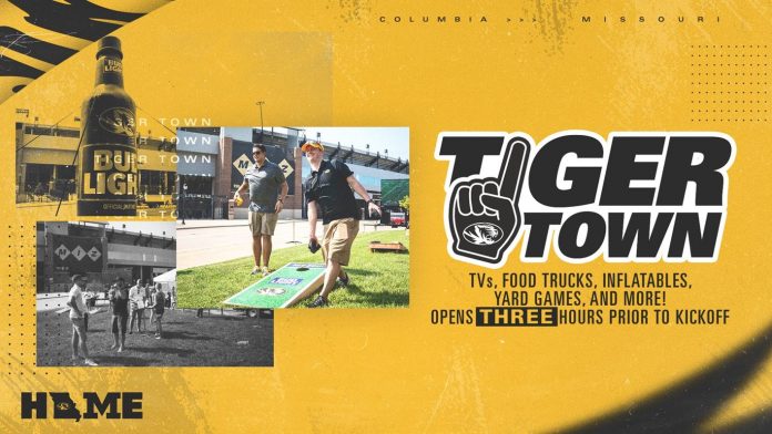 Columbia, Mo. – Mizzou Athletics announced on Tuesday a new and improved Tiger Town will reopen for the 2021 football season. Located in two distinct spaces just east of Memorial Stadium/Faurot Field, Tiger Town will open three hours prior to kickoff of each home game and will feature entertainment for fans of all ages.