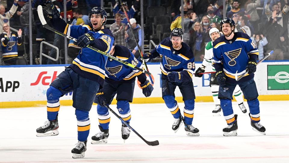 Sunday’s win was also the Blues’ first in franchise history in regulation when trailing in the final minute of the third period.