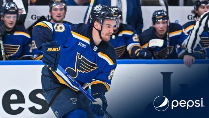 Robert Thomas scored a power-play goal on a one-timer from the right face-off circle off a pass by Brandon Saad from behind the net at 15:02 for the 4-2 final.